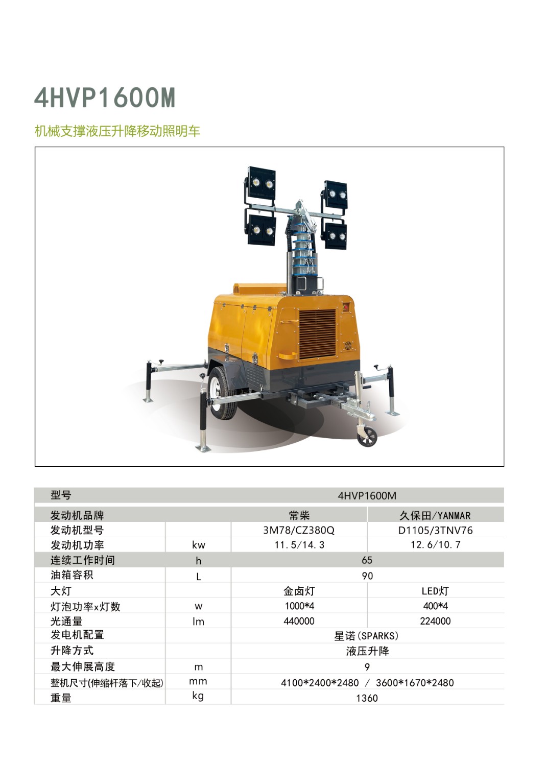 山東思拓瑞克工程機(jī)械有限公司-移動(dòng)照明車-機(jī)械支撐液壓升降照明車4HVP1600M